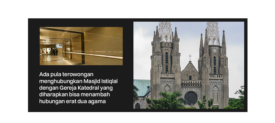 Hal yang menarik adalah pemerintah tengah membangun terowongan untuk menghubungkan Masjid Istiqlal dengan Gereja Katedral. Program yang menelan biaya hingga Rp37,8 miliar itu diharapkan bisa menambah hubungan erat dua agama.